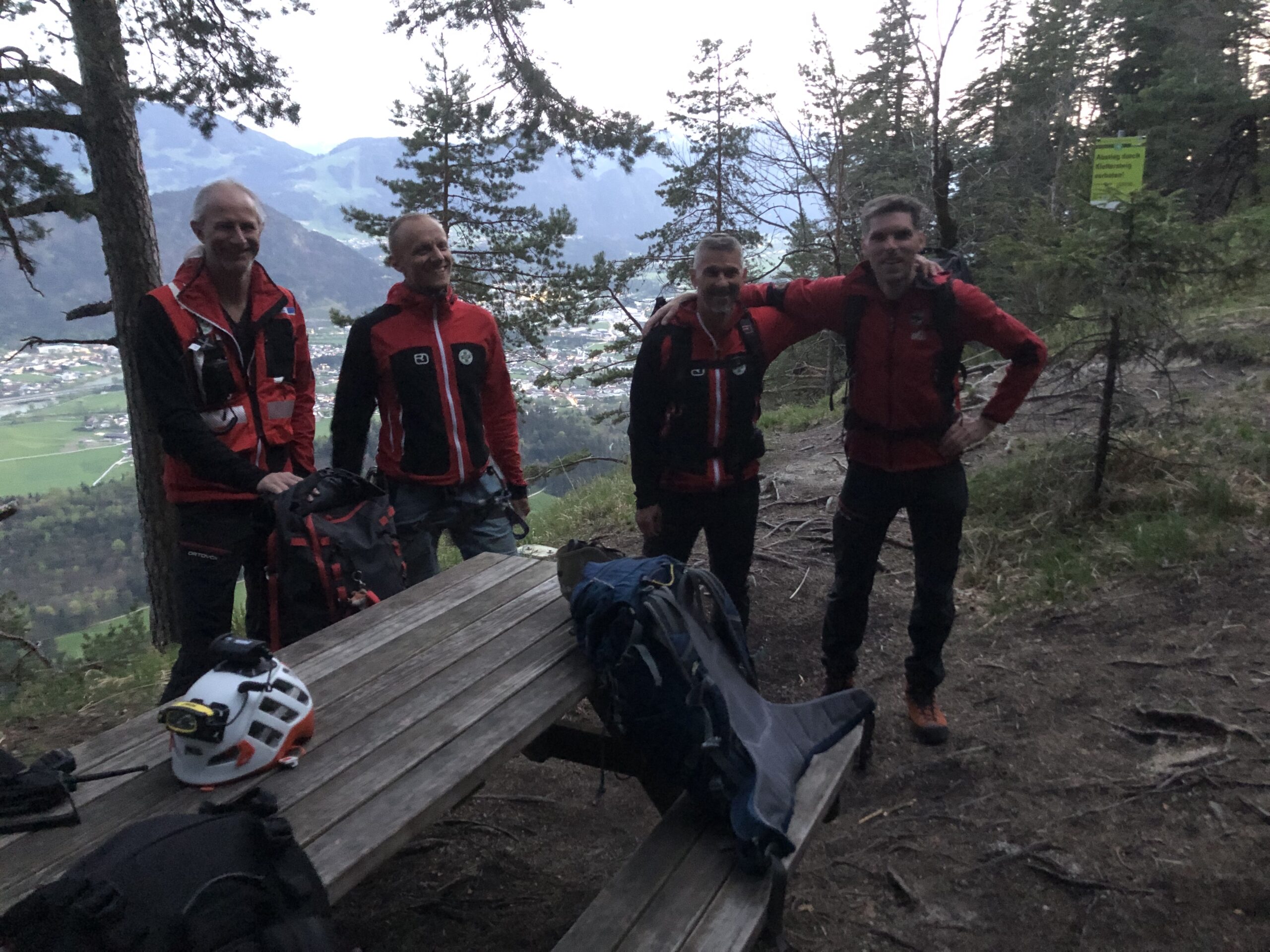 Ein 33-jähriger Mann kletterte am 13.04.2024 nachmittags alleine am Klettersteig Reintaler See in Kramsach. Obwohl er diesen Steig schon mehrfach begangen hatte, verließen ihn am Sonntagabend die Kräfte und er musste komplett erschöpft an einem Rastpunkt einen Notruf absetzen. Die alarmierten Bergretter teilten sich in 3 Gruppen: Der Voraustrupp stieg rasch über den Klettersteig zum Patienten auf, um seine Lage bestmöglich zu beurteilen. Der 2. Trupp fuhr mit dem Bergrettungsfahrzeug zum Ausstieg des Klettersteigs und transportierte Material für eine etwaige Bergung des Patienten von oben zum Klettersteig. Der 3. Trupp wartete am Seeparkplatz, um den Patienten nach einer etwaigen Bergung am Wandfuß (mit der Gebirgstrage) zu übernehmen. Der Voraustrupp stellte fest, dass der Patient mit einem Kletterseil gesichert über den Klettersteig aufsteigen konnte. Dabei wurde der Patient permanent von oben gesichert und von einem zweiten Bergrettungsmann beim Steigen unterstützt. Erschöpft, aber glücklich erreichte so das 3er Team um ca. 20:15 Uhr den Ausstieg des Klettersteigs. Anschließend wurde der Patient mit dem Bergrettungsfahrzeug zu seinem privaten PKW gebracht. Die Befragung der Alpinpolizei erfolgte im Anschluss in der Bergrettungszentrale in Kramsach.